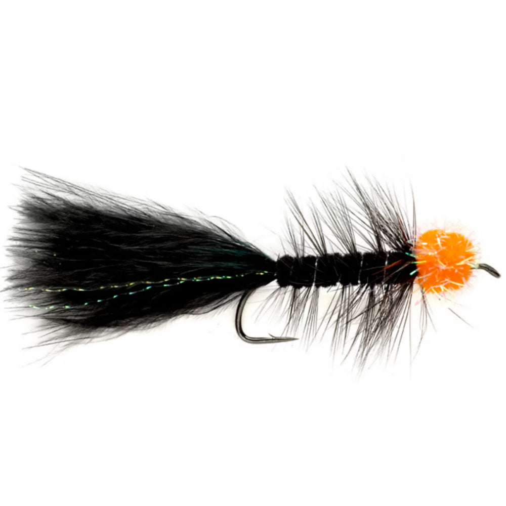 A trout and salmon slayer. Big salmon, steelhead, and trout love eating eggs and leeches; why not fly fish both? Two proven flies rolled into one, the body of a wooly bugger leech with an egg pattern tied in to the head, a combination of two favorite fares of trout and salmon. Originally designed for fly fishing king salmon in Alaska.