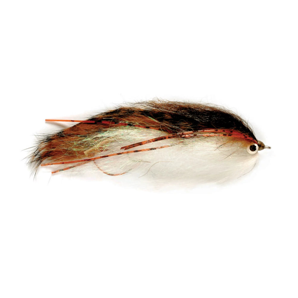 Ohio-based fly tier Mike Schmidt is always at the vise working on something new to land fish. Mike's Meal Ticket, tested on Great Lakes-area steelhead, trout, and pike, has proven itself time and again on the water. With sufficient flash, rubber legs, not to mention a stinger hook, this fly has all the earmarks of a successful big-fish streamer. In olive, tan.