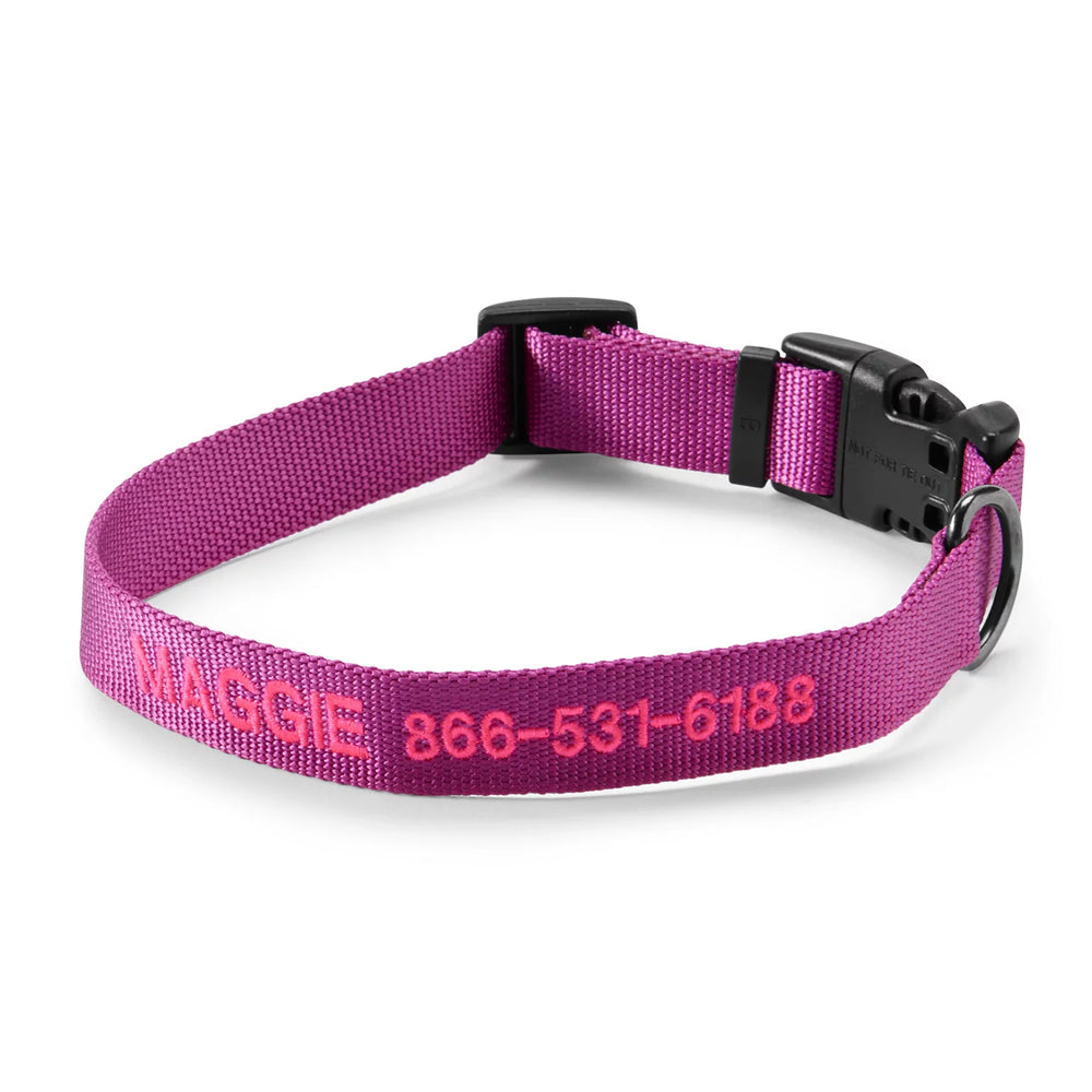 Personalized with your phone number for safety and always a perfect fit, our customer-favorite adjustable side-release buckle dog collar goes on in a snap and removes just as fast. Embroidered with your dog’s name and your phone number for free, this collar helps make sure your pup always finds their way home.