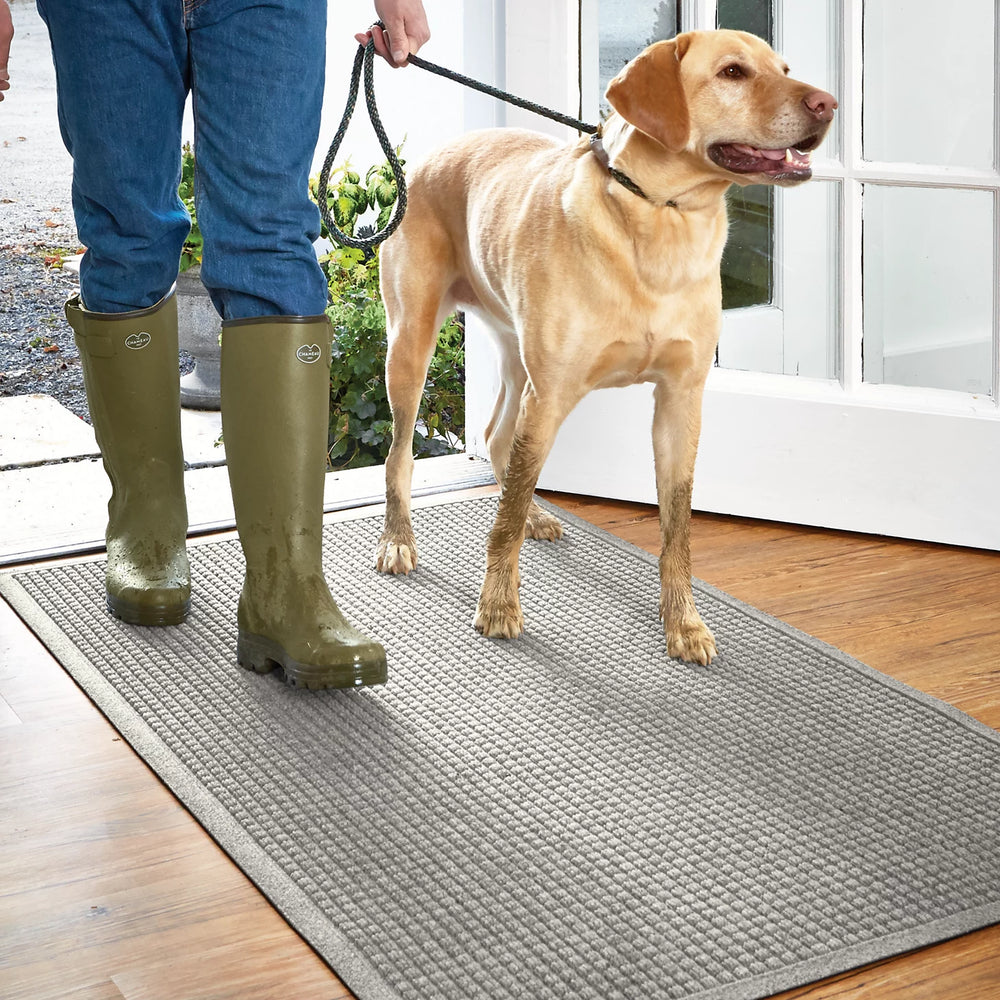 Some call our Recycled WaterHog Mats legendaryand we can't argue with that! Our tried-and-true American-made mats have been tested in the muddiest households and the busiest hotels and businesses. The thirsty rug features a tri-denier fiber system that effortlessly takes the worst that any season can dish out. Thick fibers scrape off mud, sand, or snow; thin fibers remove moisture from the soles of boots and shoes; and side channels drain water quickly. The strong rubber backing holds the mat securely in place. Mold- and mildew-resistant, this heavy-duty rug is great for use in your mudroom or entryway, kitchen, or basement, or wherever life gets a little busy and a little messy.