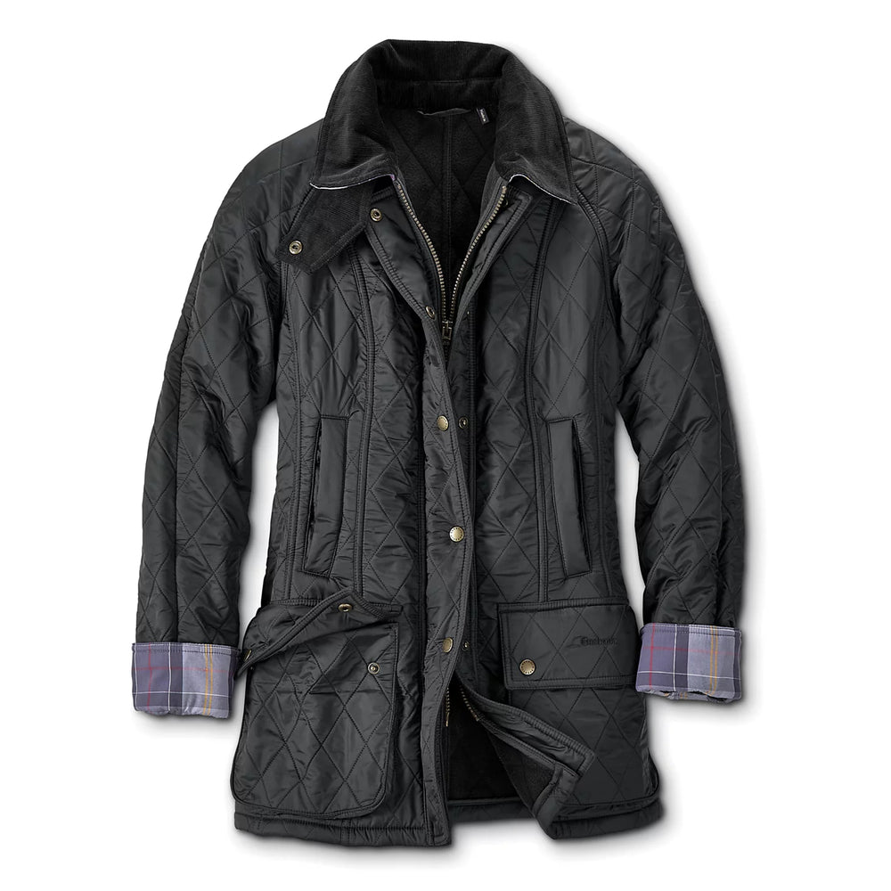 Legendary quality meets cozy three-season warmth in the diamond-quilted, fleece-lined Barbour Beadnell Polarquilt Jacket. The corduroy collar with detachable throat latch combines with a zip front with snap-shut storm flap to seal out the cold. Features handwarmer pockets and snap-shut patch pockets to keep essentials within reach. Double-vented rear snap-close flaps offer complete freedom of movement.